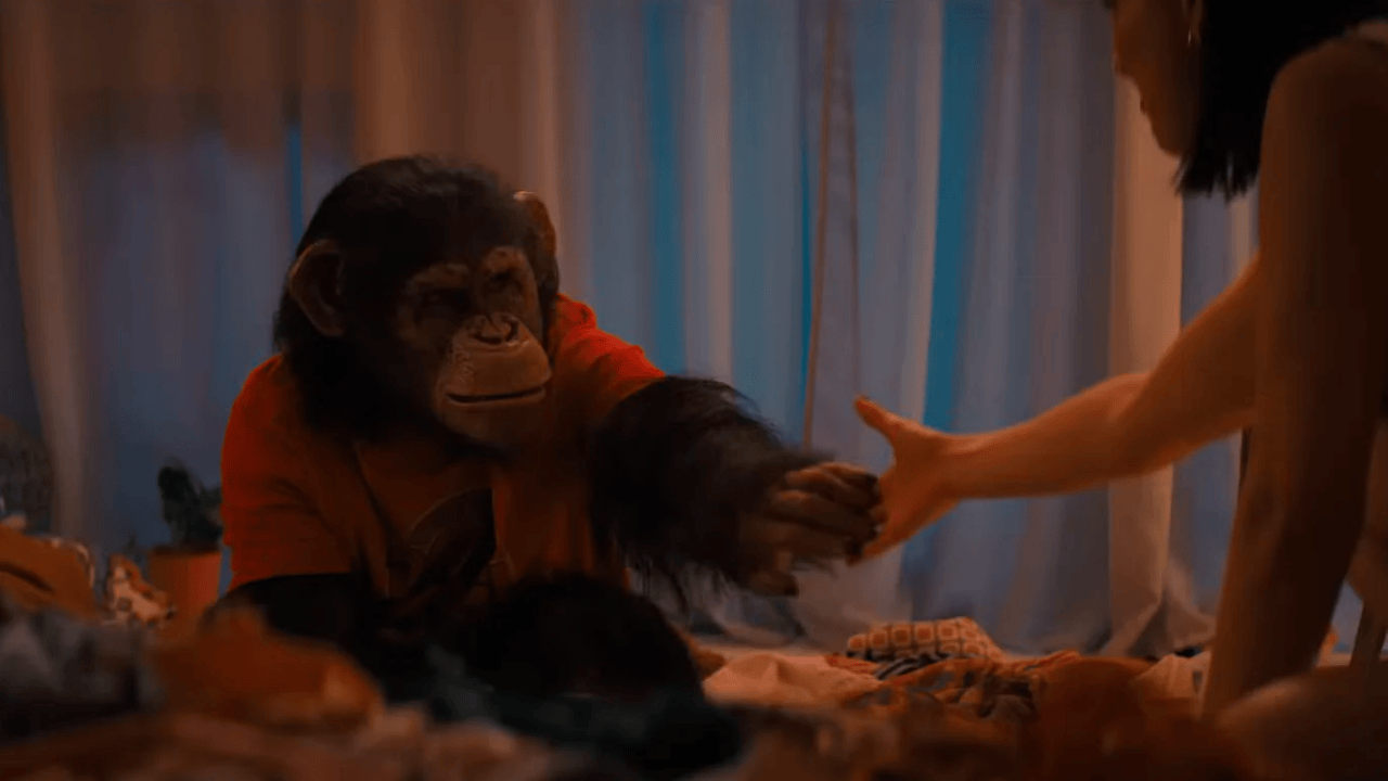 CGI yerine pratik efektlerin oldukça fazla kullanıldığı yapım; tek mekânda geçmesinin sunduğu sıkışmışlık hissi nedeniyle Stephen King’in Lewis Teague yönetmenliğinde sinemaya uyarlanan ve bir yarasa tarafından ısırıldıktan sonra kuduza yakalanarak sahiplerine saldıran bir köpeği konu edinen Cujo (1983) ve şempanzenin saçtığı dehşet nedeniyle Jordan Peele’nin 2022 yapımı Nope filminde yer alan şempanze Gordy sekanslarının birleşiminden oluşmuş bir hikâye sunuyor. Ailenin bir üyesi gibi olan, kelimeleri sese dönüştüren ve çocuk eğitimi için kullanılan bir aletle düşüncelerini aile üyelerine aktarabilecek şekilde eğitilmiş bir evcil hayvanın delirerek ailesi olarak gördüğü insanlara saldırmasını temel alıyor. Ancak hikâyenin daha kurulum aşamasında bazı sorunlar bulunuyor; Hawaii’de şempanze sahibi olmanın yasak olmasının yanı sıra kuduz vakasının görülmediği tek eyalet de burası. Şempanzenin kuduz olduğu için suya yaklaşmamasını kabul etsek de onların yüzememesine dair bilgiler de tam bir fiyasko. Ancak bu hatalar üzerine kurulu olan filmi izlemek ise hayli eğlenceli.
