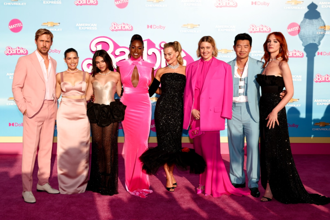 Greta Gerwig'in yönettiği "Barbie" filminin yıldızları, filmin dünya prömiyerinin yapıldığı Los Angeles'ta, Barbie'nin pembe dünyasını yansıtan pembe halıda bir araya geldi.