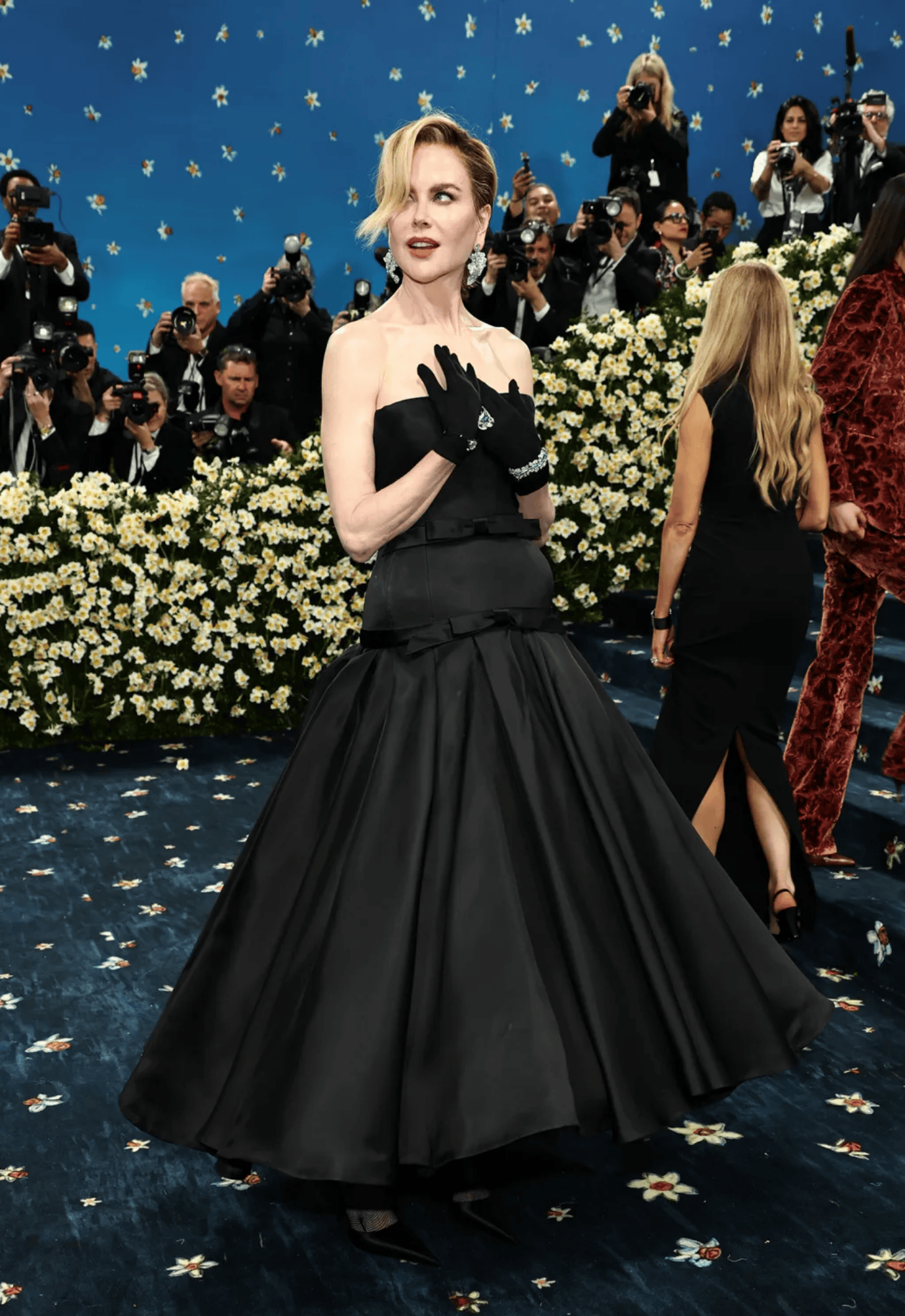 450’ye yakın davetlinin ağırlandığı galada, Zendaya, Nicole Kidman, Miley Cyrus, Doja Cat, Anne Hathaway, Dua Lipa, Kim Kardashian, Jenna Ortega ve Barry Keoghan gibi dünya çapında ünlü isimler kırmızı halıda boy gösterdi. Her biri, temaya kendi özgün yorumunu katarak modanın yaratıcı gücünü sergiledi. Özellikle Zendaya’nın klasik takımı yeniden yorumlayan sofistike tarzı ve Anne Hathaway’in zarif detaylarla bezeli maskülen silueti geceye damgasını vurdu.