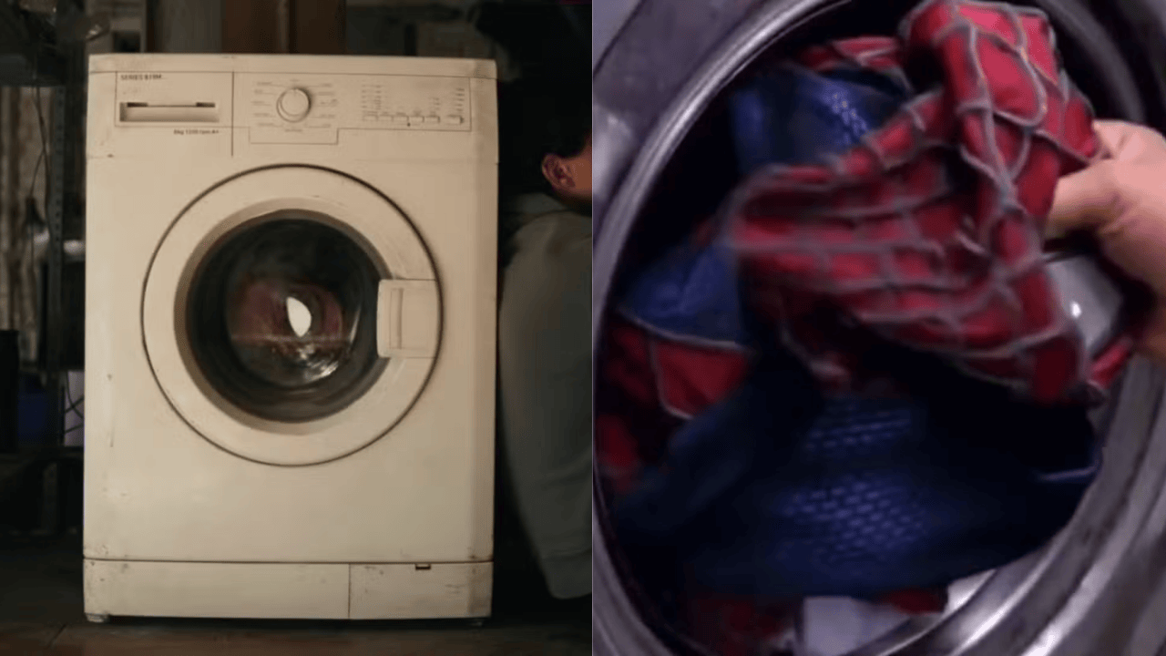 Sam Raimi imzalı Spider-Man 2 filminde, Tobey Maguire’ın canlandırdığı Peter Parker da kostümünü çamaşırhaneye götürürdü. O ikonik kostümü kimsenin görmediğinden emin olsa da, kostümü ve maskeyi beyazlarından ayrı yıkamayı ihmal etmişti; sonuç ise pespembe olmuş çoraplar ve kırmızı-mavi lekelere bürünmüş yepyeni iç çamaşırlarıydı.