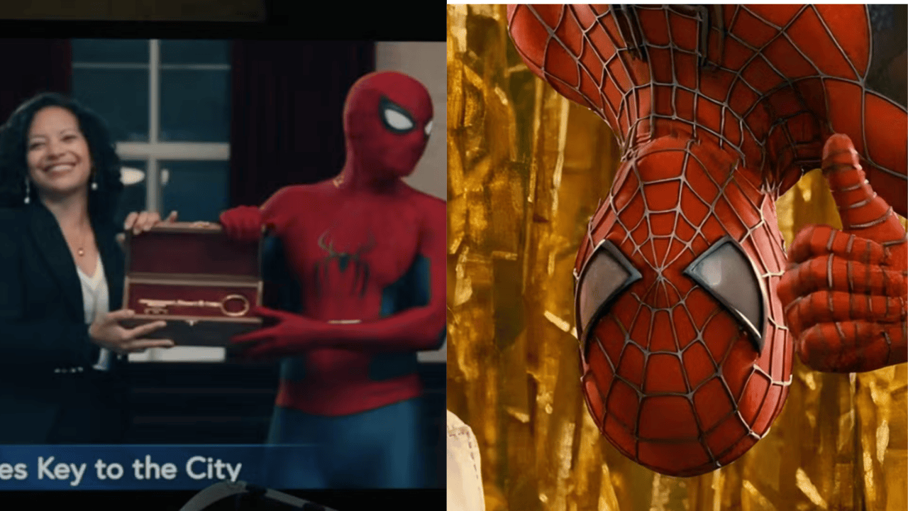 Benzer şekilde, Tobey Maguire'ın Spider-Man'i de 2007 yapımı "Spider-Man 3" filminde şehrin anahtarını Gwen Stacy'den (Bryce Dallas Howard) almıştı; gerçi o tören Sandman tarafından yarıda kesilmişti.