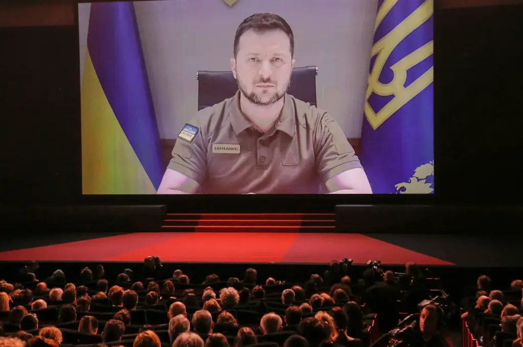 Törene damga vuran anlardan biri de Ukrayna Devlet Başkanı Volodimir Zelenski'nin video bağlantısı ile gerçekleştirdiği konuşma oldu. Eski aktör Zelenski, Rusya Cumhurbaşkanı Vladimir Putin ile Charlie Chaplin'in sinema tarihine geçen "Büyük Diktatör" filmi arasında benzerlik kurarak, "Dünyanın, yeni diktatörleri anlatmak için yeni bir Charlie Chaplin'e ihtiyacı var" dedi.