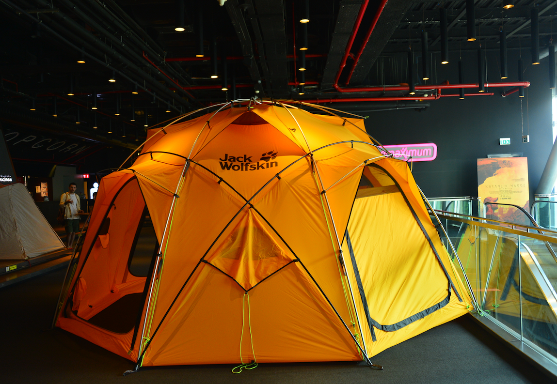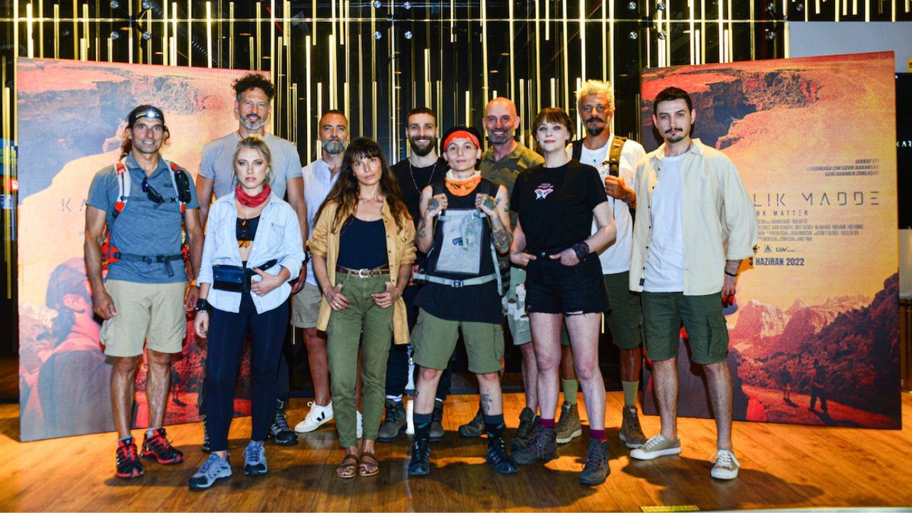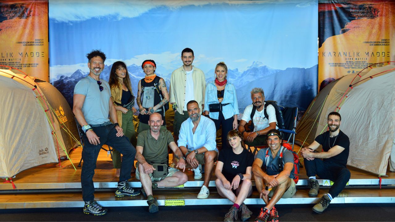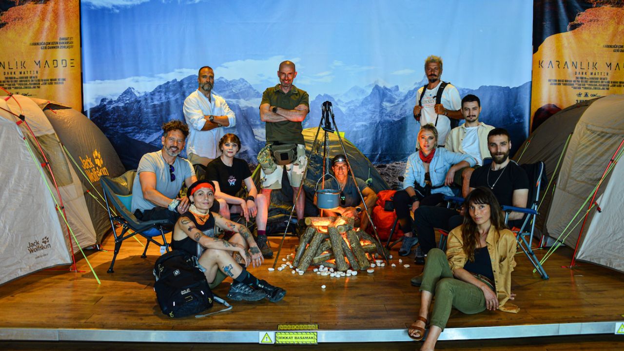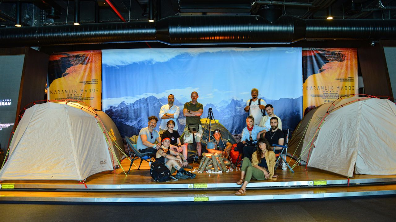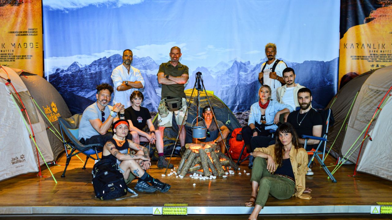 Yarın vizyona girecek "Karanlık Madde" filmi ilklere imza atmaya devam ediyor. Film gala gecesinde misafirlerine bir kamp alanı yaratarak, büyük bir prodüksiyon ile karşıladı. Sinema salonuna, dünyanın deniz seviyesi üzerindeki en yüksek dağı Everest’e, son tırmanıştan önce kurulan, zorlu hava şartlarına uygun, 2.10 metre boyunda ki çadır kuruldu. Ateş, çadır, özel ses, ışık ve görüntü efektleri kullanılarak, tüm kamp malzemeleriyle misafirlere kamp atmosferi yaşatıldı.