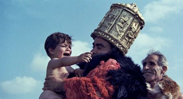 Klasik “Kral Oedipus” tragedyasının karanlık ve sürükleyici bir yeniden anlatımı. Oedipus bilmeden babasını öldürüp annesiyle evlenir. Gerçek ortaya çıktığında Oedipus kendi gözlerini çıkarır ve kızı Antigone tarafından bulunana kadar, kör bir dilenci olarak sokaklarda dolanır. Fas’ta geçen film çöl manzaraları ve güçlü mağribi mimarisinden oluşan görsel bir şölen. Oyuncu kadrosundaysa avangart film ve tiyatro yönetmeni Carmelo Bene, New York’taki Living Theater’dan Julian Beck ve başrahip rolünde Pasolini’nin kendisi bulunuyor.