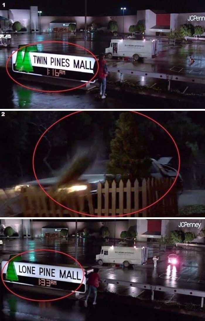 Geleceğe Dönüş filminde Marty McFly geçmişe geri döndüğünde, 3 ağaçlı logonun henüz tek ağaçlı olduğunu görüyoruz.