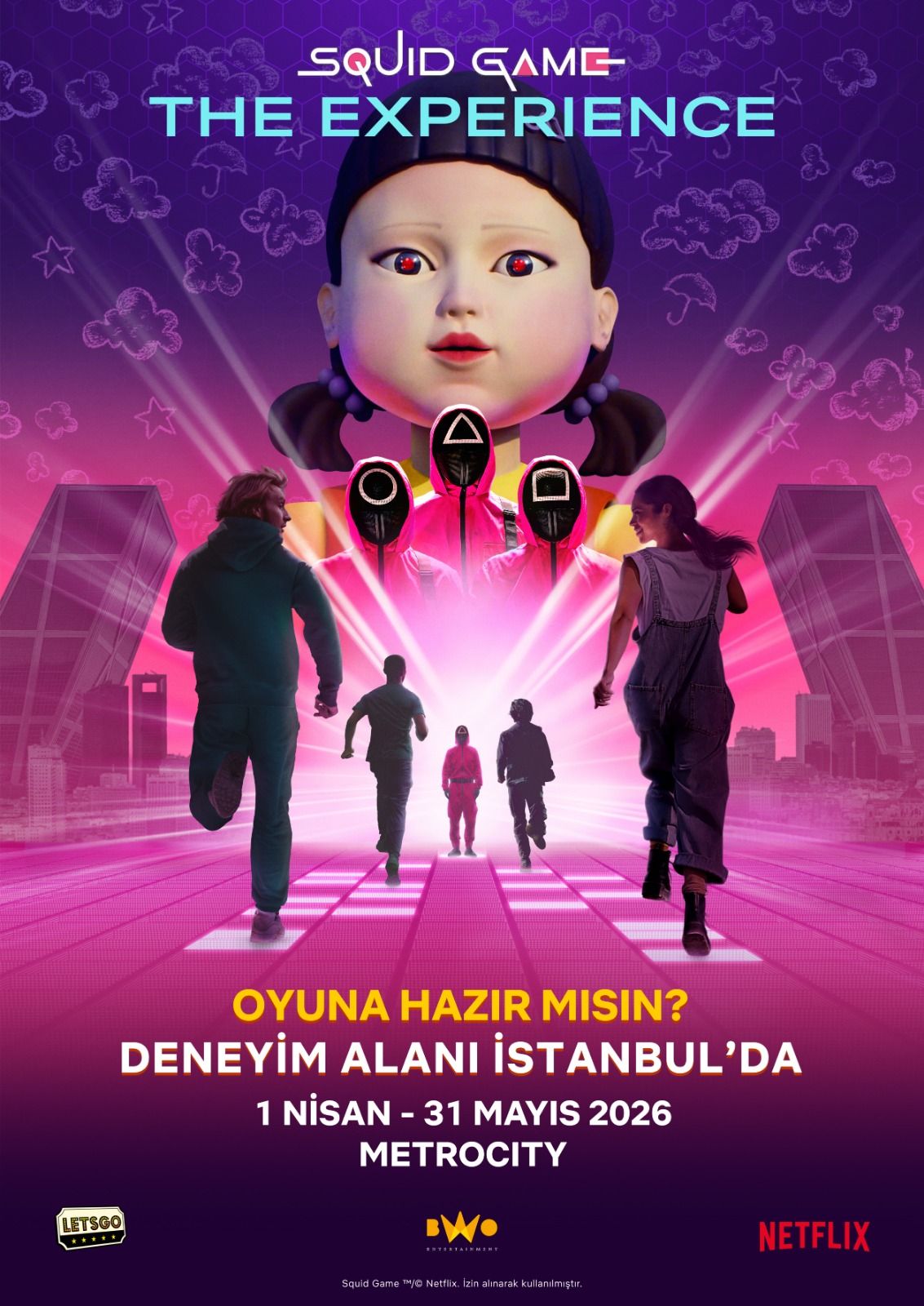 Milyonları peşinden sürükleyerek global bir fenomene dönüşen Squid Game, gerçek zamanlı deneyimiyle İstanbul’a geliyor. New York, Seul, Madrid ve Londra’dan sonra “Squid Game: The Experience”, 1 Nisan 2026’da İstanbul’da kapılarını açarak şehrin şimdiye kadar gördüğü en büyük deneyim alanı olmaya hazırlanıyor. Dünyanın en çok konuşulan Netflix yapımlarından biri olan Squid Game, izleyicisini bu kez ekrandan çıkararak oyunun tam merkezine davet ediyor. Global turnesi kapsamında yüz binlerce ziyaretçiyi ağırlayan bu dev organizasyon, 1 Nisan itibarıyla Metrocity AVM’de yaklaşık 3.000 metrekarelik özel bir alanda hayat bulacak.