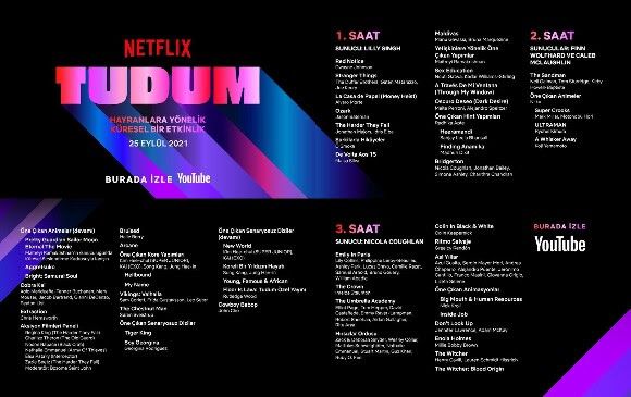Chris Hemsworth'ün başrolünde yer aldığı devam filmi Extraction 2'nin ilk tanıtımı, TUDUM'ın ikinci saatinde izleyici karşısında olacak. Cowboy Bebop'ın açılış müziği ile heyecan dinamik tutulacak. Charlize Theron, Regina King, Zazie Beetz gibi yıldız oyuncular panelde yer alacak. Emily in Paris'in 2. sezon tanıtım videosu yayınlanacak ve The Crown'ın yeni kraliçesini karşılayacağız. Yıldız oyuncularla dolu Don’t Look Up'tan klip izleyeceğiz. Hırsızlar Ordusu'nun ilk fragmanını, The Witcher 2. sezonundan daha önce görmediğimiz detayları göreceğiz.