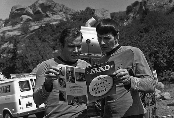Kaptan Kirk ve Spak, sette Mad dergisini karıştırıyorlar.