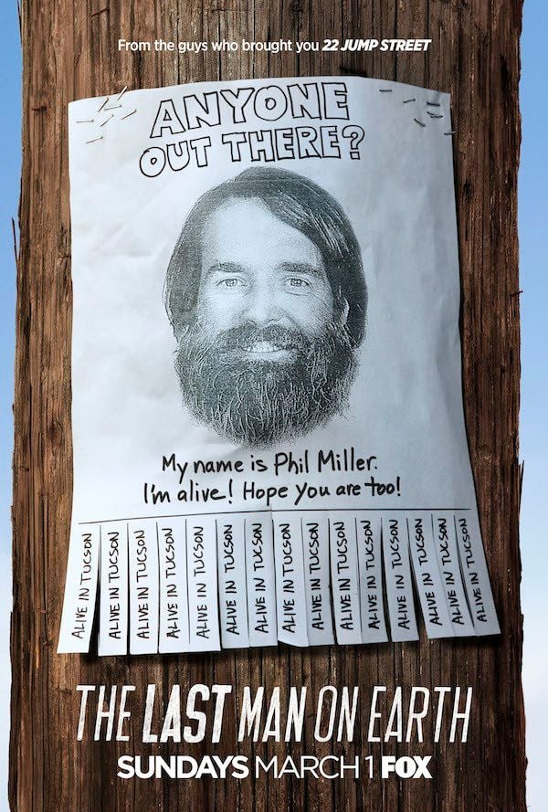 Dünyada kalan son insan olsanız ne yapardınız? Nebraska, Gözüm Üzerinizde (The Watch) ve 30 Rock gibi yapımlardan hatırlanabilecek Will Forte'nin yaratıcılığını yapıp başrolde yer aldığı yeni dizi Last Man on Earth, yakında Fox ekranlarında başlıyor. Forte dışında January Jones, Kristen Schaal, Mel Rodriguez ve Cleopatra Coleman gibi isimlerin yer aldığı yapımdan ilk poster görücüye çıktı. Kahramanımız astığı ilanda "Orada kimse var mı? Merhaba ben Phil Miller. Yaşıyorum! Umarım sen de yaşıyorsundur!" diyor.