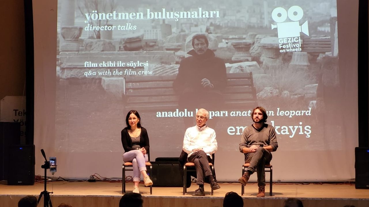 “Anadolu Leoparı” filminin gösterimi sonrasında yönetmen Emre Kayiş ve filmin oyuncularından İpek Türktan izleyicilerin sorularını yanıtladı. Emre Kayiş, filmdeki zaman ve mekânın belirsizliğinin nedeni sorulunca; “Film bir çöküş hikâyesi, bunu mümkün olduğunca soyutlaştırıp, güncel politik olup bitenin de bir noktasına değdiren ama temelde daha evrensel bir şey yapmak hayaliyle mümkün olduğu kadar zamansız mekânsız bir hale getirmeye çalıştık. Filmin güncelde işgal ettiği yer tabii ki önemli, ama 30 sene sonra izlendiğinde ki belki o zaman Türkiye’nin politik durumu ve her şey çok daha değişik olacak, tahayyül bile demiyoruz geleceği, filmin geçmişe bakıldığında yine aynı şekilde bu çöküş hikâyesini evrensel karakterlerle anlatabilmeyi becerebilmesini hedeflediğim için zaman ve mekânı muğlak hale getirmeye çalıştım.” dedi.