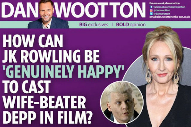 2018'in Nisan ayında İngiliz sansasyon gazetesi The Sun'da, Johnny Depp'ten "wife-beater" (eşini döven koca) olarak bahsedildi. Bu haberin yayınlanmasıyla birlikte şu anki itibar davasına kadar uzanan zincirleme olaylar başladı.