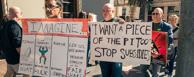 Ellerinde pankartlarla Dolby Theatre çevresinde toplanan yaklaşık 450 kişilik grup, seslerini hem Hollywood'un kalbinden konuklara, hem de twitter ve sosyal medya araçlarıyla dünyaya duyurmaya çalıştı. Ayrıca görsel efekt çalışanları sendikası da bir uçakla tören çevresinde uçarak "Box Office + İflas = Görsel Efekt Çalışanları Birliği" yazılı bir pankart taşıdı.