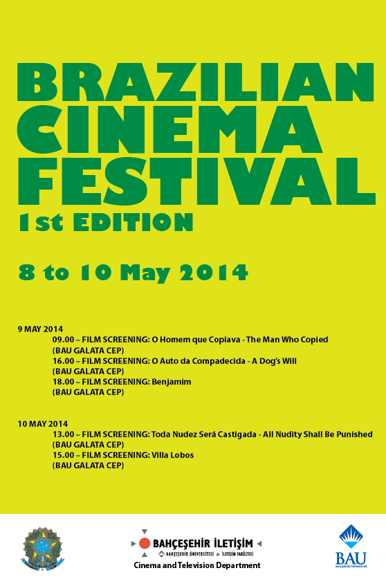Bahçeşehir Üniversitesi İletişim Fakültesi, Sinema ve Televizyon Bölümü ve Brezilya İstanbul Başkonsolosluğu’nun bir araya gelerek hazırladığı ‘Brazilian Cinema Festival’ 8-10 Mayıs 2014 tarihleri arasında Bahçeşehir Üniversitesi Galata Kampüsü’nde gerçekleşecek.