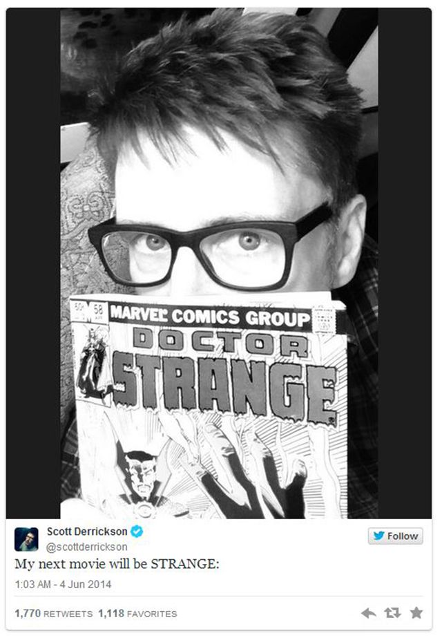 The Exorcism of Emily Rose ve Sinister gibi filmlerle tür sineması meraklılarının kalbini fetheden ve son olarak Eric Bana'nın başrolünde yer aldığı Deliver Us From Evil'ı tamamlayan Derrickson; sosyal medya üzerinde paylaşmış olduğu fotoğrafla, Dr. Strange projesinde resmen yer alacağını duyurdu!