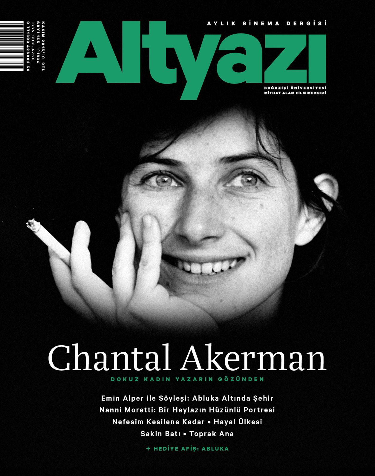 Başarılı sinema dergisi Altyazı'nın kasım sayısı tüm raflardaki yerini aldı. Aylık sinema dergisi kasım sayısında, yakın zamanda kaybettiğimiz usta feminist yönetmen Chantal Akerman’ı kapağına taşıdı. Kısa metraj filmlerden belgesellere, uzun metraj filmlerden video işlerine geriye etkileyici bir sinematografiye sahip Akerman, 1968 yılından günümüze sürekli üretim halinde olduğu sinemasında izleyiciyle mahrem bir ilişki kurdu. Altyazı, sinema tarihinin en önemli feminist yönetmenlerinden Akerman’a, dokuz kadın kalemin yazılarından oluşan bir dosyayla veda ediyor. Ayrıca bu sayıda Venedik Film Festivali’nden Jüri Özel Ödülü’yle dönen Abluka, dünya galasını Berlin Film Festivali’nde yapan Nefesim Kesilene Kadar, Genç bir romantiğin Vahşi Batı’daki macerasını anlatan Sakin Batı, olumlu ve olumsuz eleştirileri bir arada bulunduran Mustang gibi birçok filmi de bulabilirsiniz.