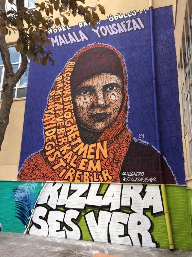 Kadıköy Mesleki ve Teknik Anadolu Lisesi’nin duvarlarına Türk Graffiti sanatçısı Highero ve arkadaşları tarafından 9 günde Malala’nın illüstrasyon portresi yapıldı. Malala’nın ilham veren “Bir çocuk, bir öğretmen, bir kitap ve bir kalem dünyayı değiştirebilir” sözleri ile süslenen illüstrasyonda “Kızlara Ses Ver” projesine de yer verildi.