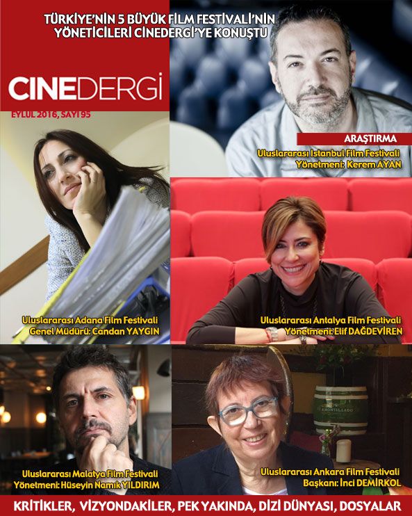 İnternetin en kapsamlı sinema dergilerinden biri olan Cinedergi, 95. sayısıyla da sinema gündeminin nabzını tutuyor. Yeni sayıda Cinedergi, sezonun yeniden başlaması, festivallerin arka arkaya sıralanmasıyla birlikte film festivallerini yöneten 5 festival yöneticisine Semra Güzel Korver, 5 soruyla mikrofon uzatıyor.