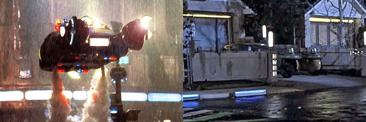 Bıçak Sırtı ve Geleceğe Dönüş 2 filminde aynı uçan araba kullanıldı. Bıçık Sırtı'nda "Spinner" olarak anılan araba, Geleceğe Dönüşte boyanmış ve kuytuya park edilmişti.