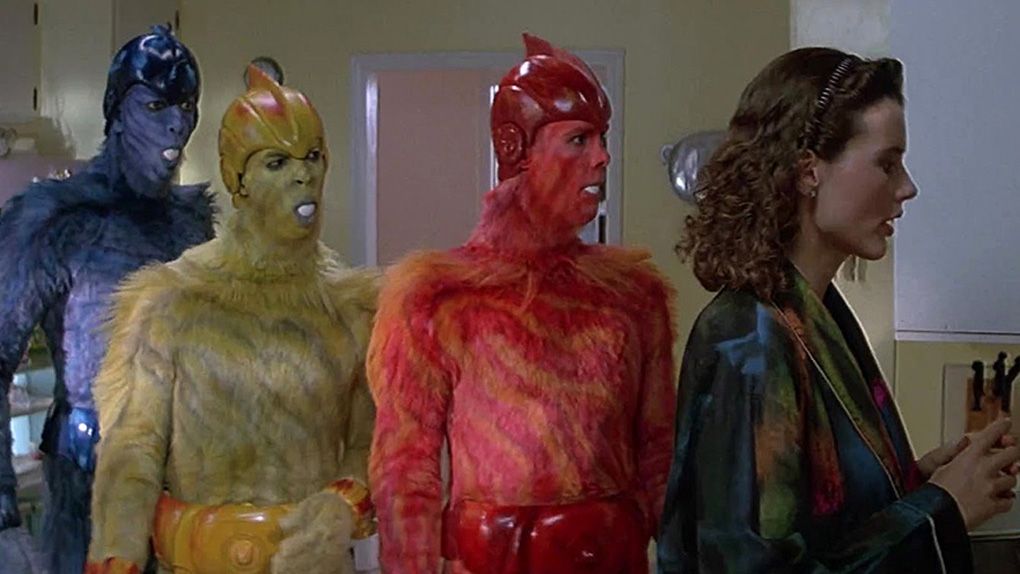 Ace Ventura ve Maske sayesinde mega-star olmadan önce Jim Carrey, Earth Girls Are Easy isimli bir filmde yer aldı. İnsanların arasına katılan bir uzaylıyı (kırmızı olan) canlandırdığı filmde rol arkadaşları olarak Jeff Goldblum, Damon Wayans ve Geena Davis bulunuyordu.